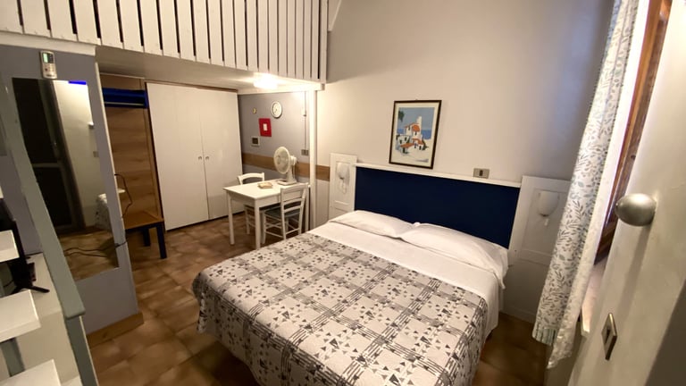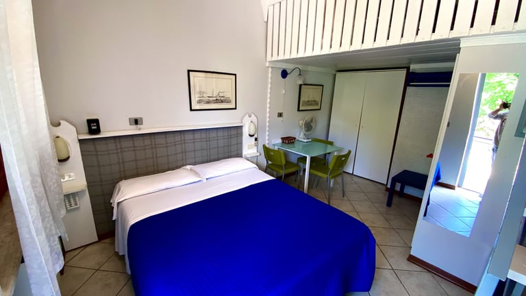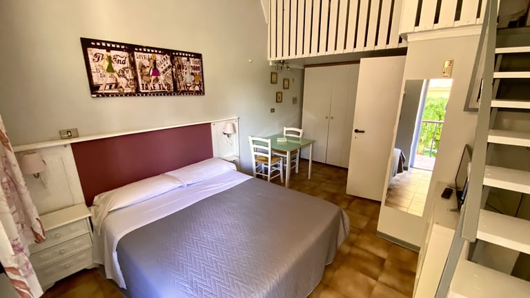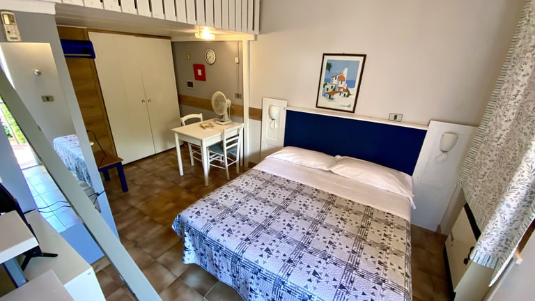Camera doppia standard disponibile con letto matrimoniale o 2 letti singoli, composta da una camera da letto, un bagno privato e un terrazzo. Disponibile anche davanti alla piscina.
